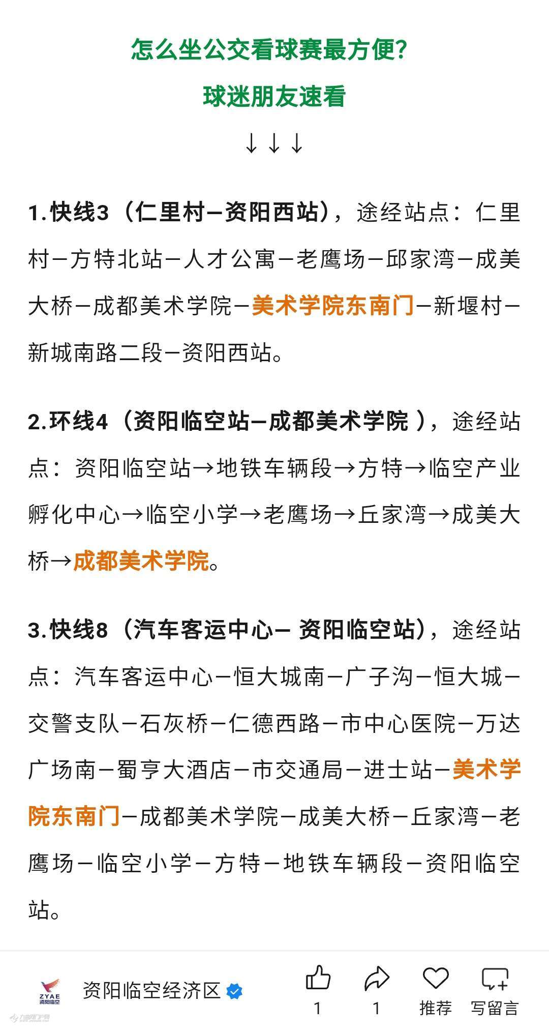 10月25日、11月16日,持“川超”门票可免费乘坐资阳公交!