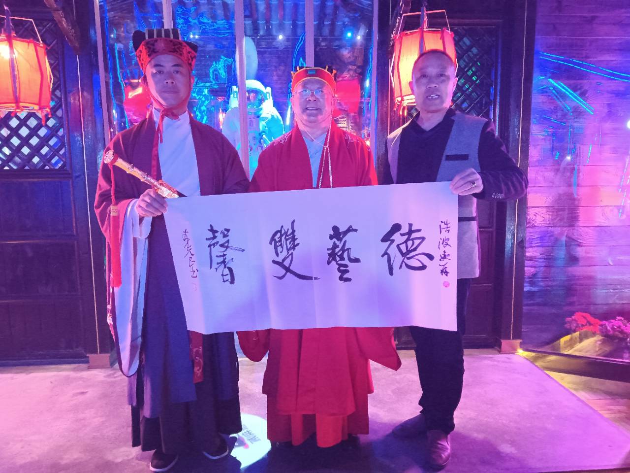 明天,11月20日,位于城东碧霞路的贰麻酒馆正式开业。今天晚上,贰麻酒馆邀请了资阳本土的社会各界名人参加了开业前的庆典。会场一派热火朝天。我被受邀到场现场为群众书写书法作品,为庆典增加了浓墨重彩的一笔。
