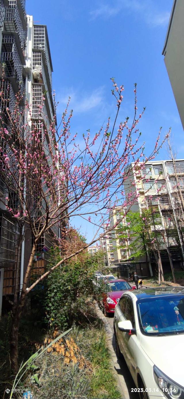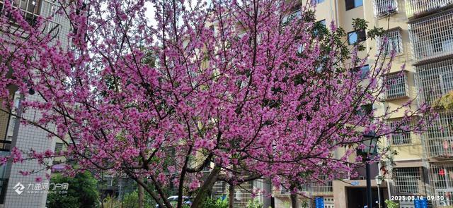 【在资阳晒春天】南骏大道的紫叶李好漂亮!在运动馆外齐刷刷地盛..