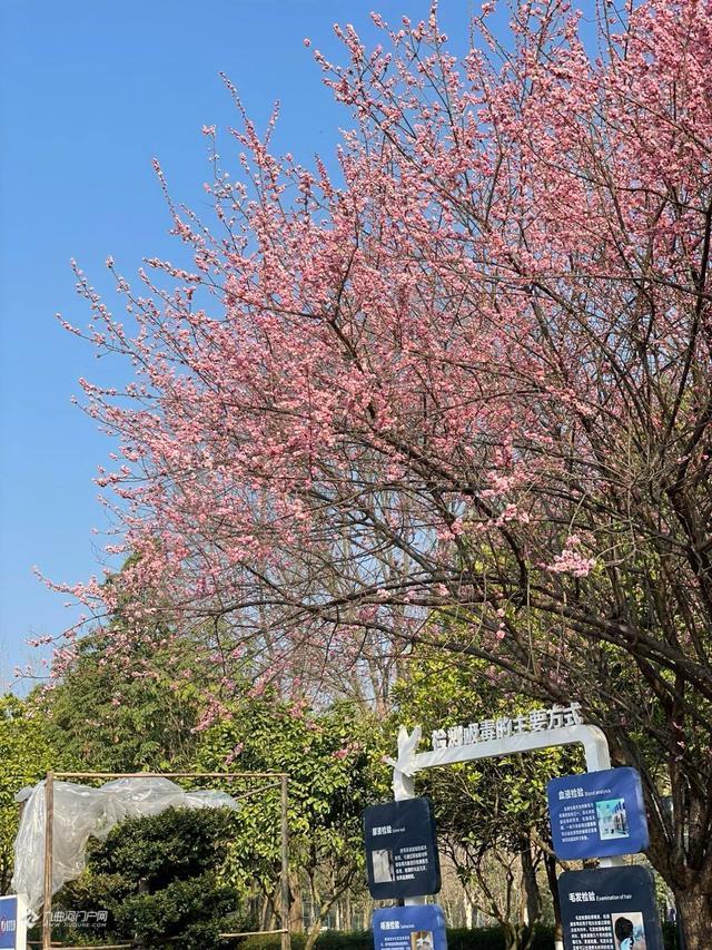 【在资阳晒春天】南骏大道的紫叶李好漂亮!在运动馆外齐刷刷地盛..