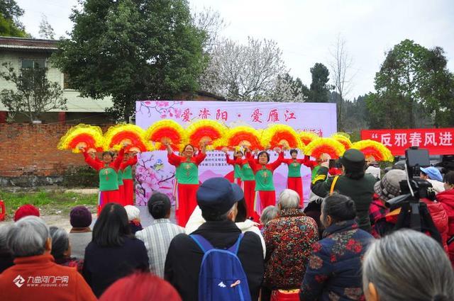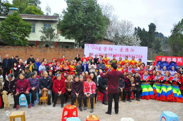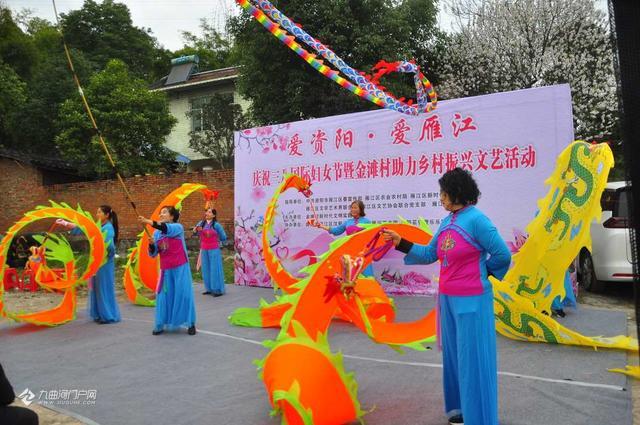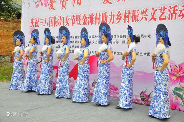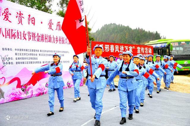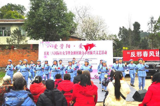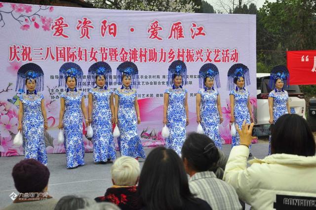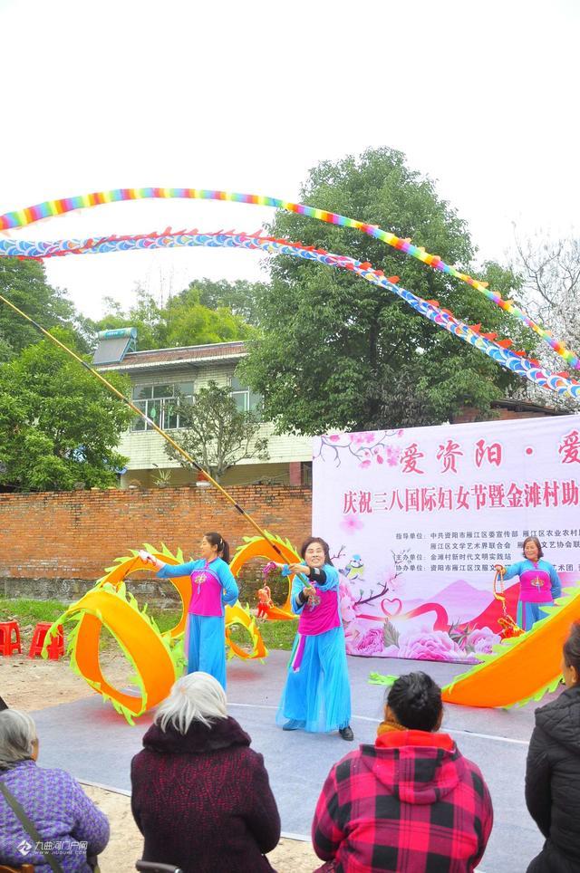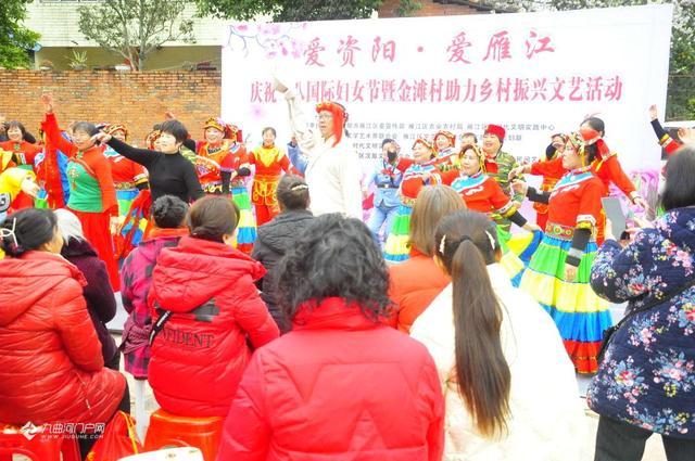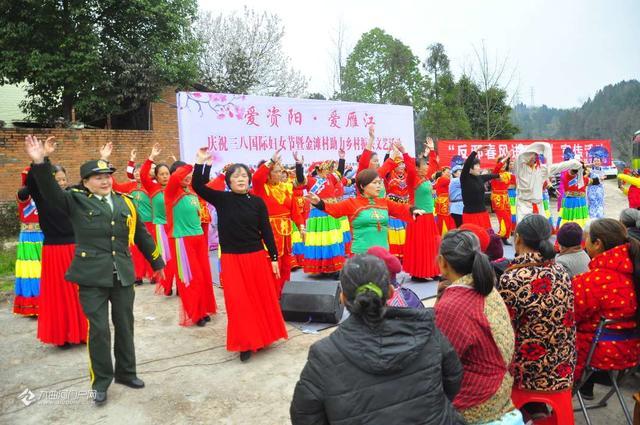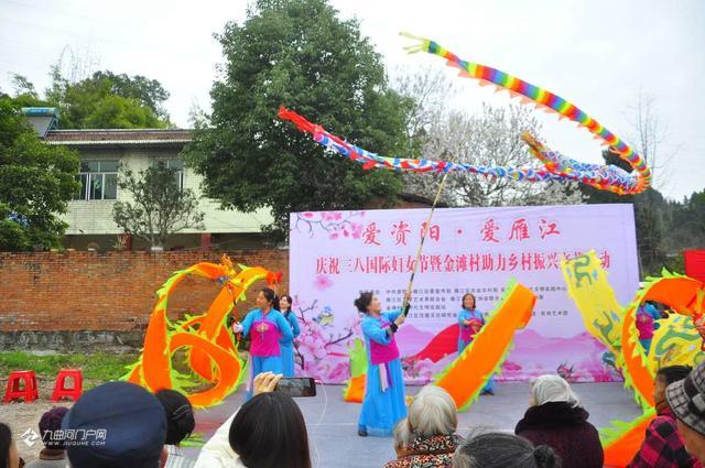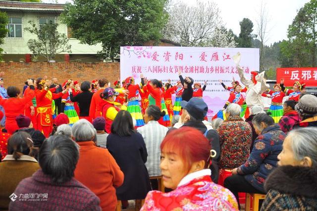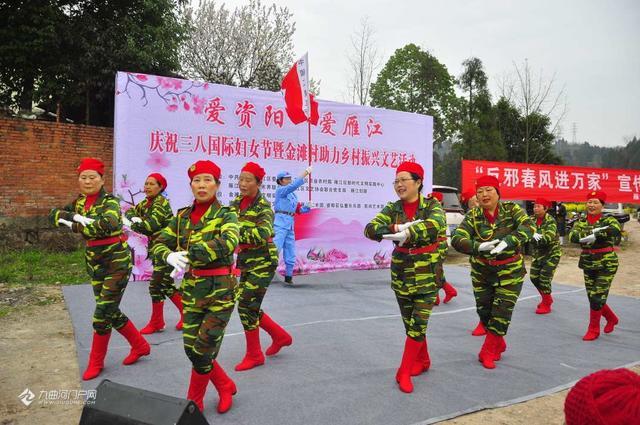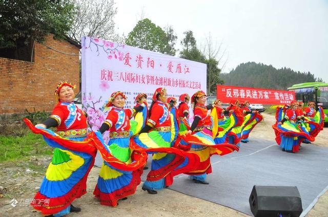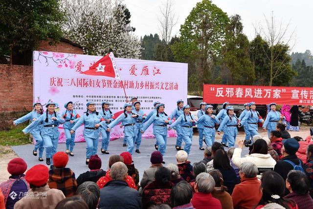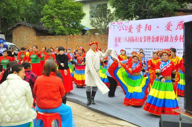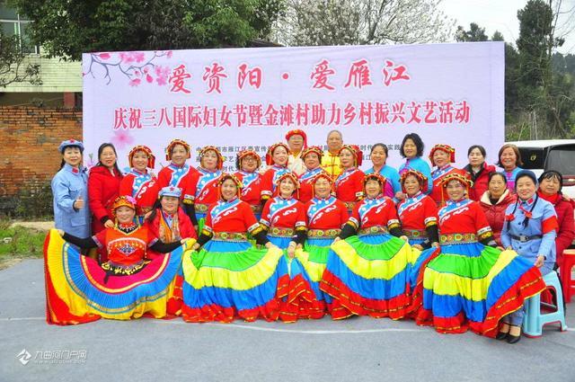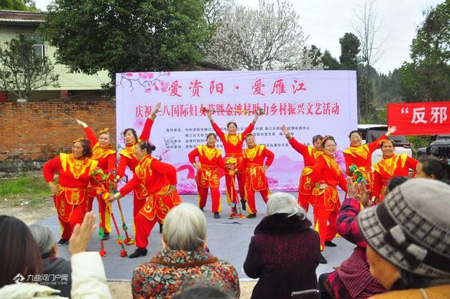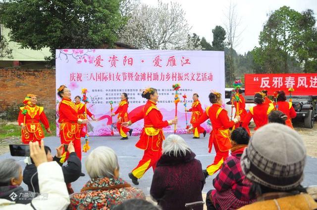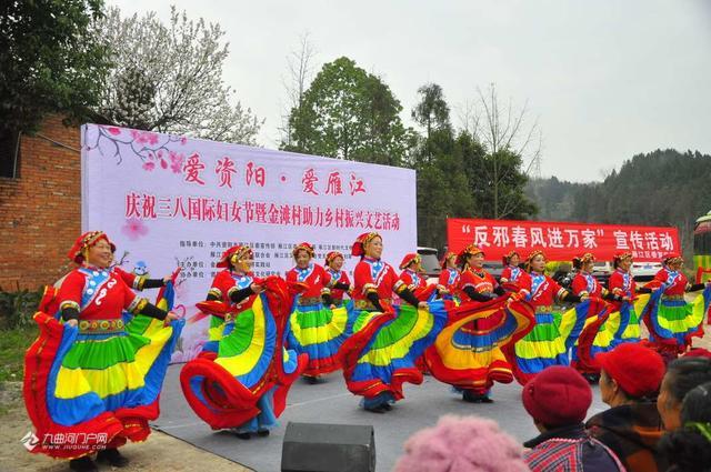 3月6日,在金滩村村委会旁的空地土坝,临时搭起了坝坝舞台,十余辆满载文艺志愿者的汽车相继开进绿水青山环绕的院坝,为村民们带来一场“庆三八,助力乡村振兴”为主题的文艺大餐。