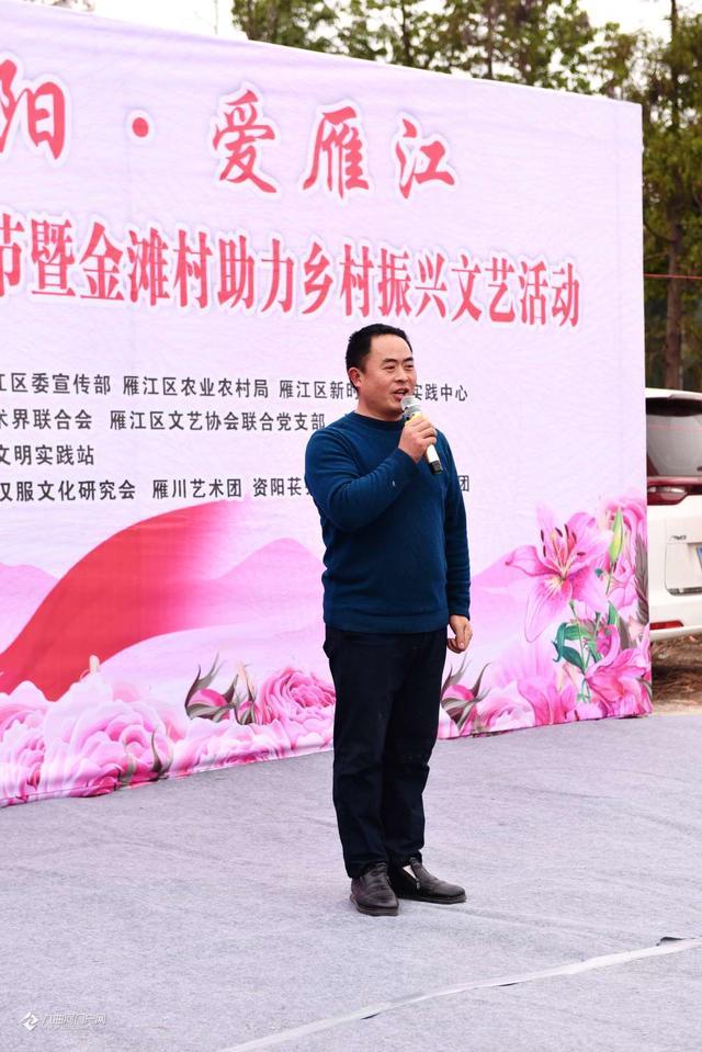 这是资阳市雁江区委宣传部、雁江区农业农村局、雁江区新时代文明实践中心、雁江区文学艺术界联合会、雁江区文艺协会联合党支部、雁江区妇联共同指导下,雁江区松涛镇金滩村新时代文明实践站主办,由资阳市雁江区汉服文化研究会、雁川艺术团、资阳苌弘爱乐乐团、民间艺术团共同协办的。