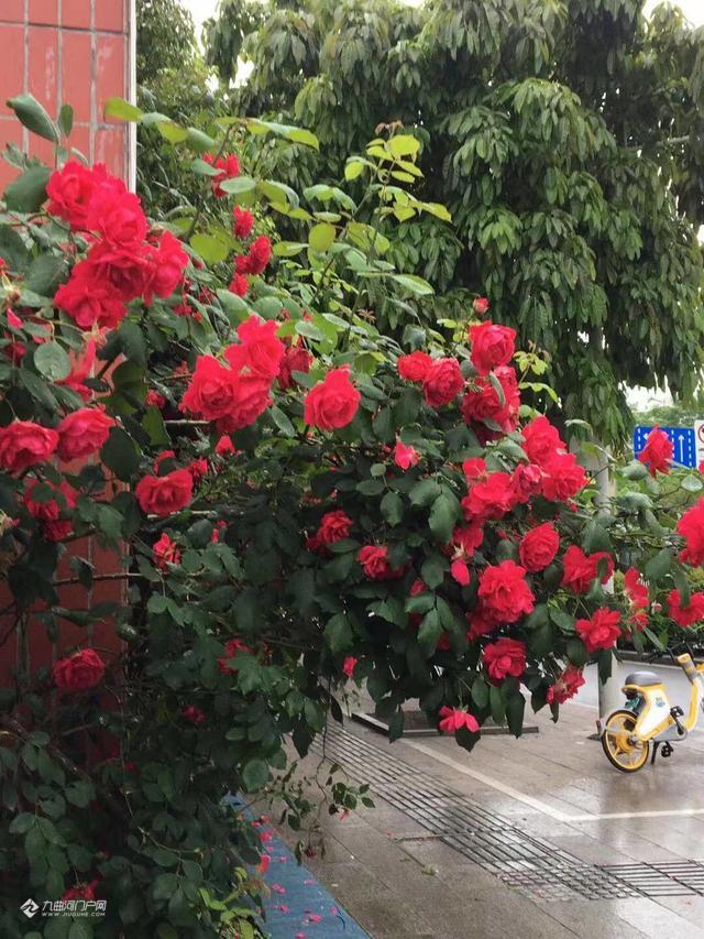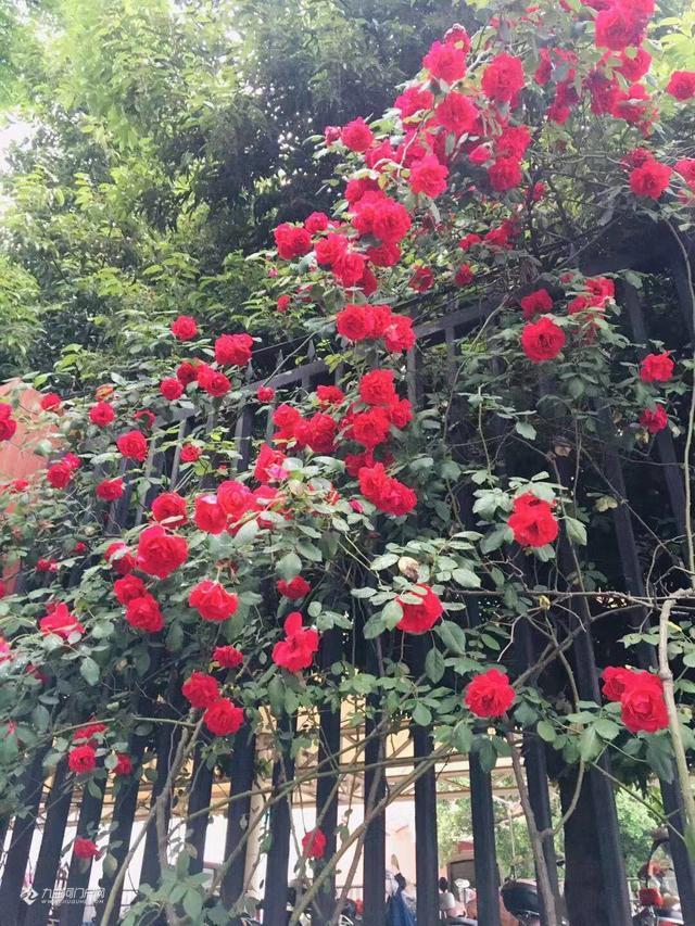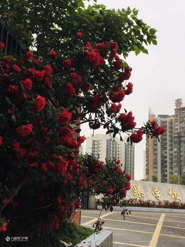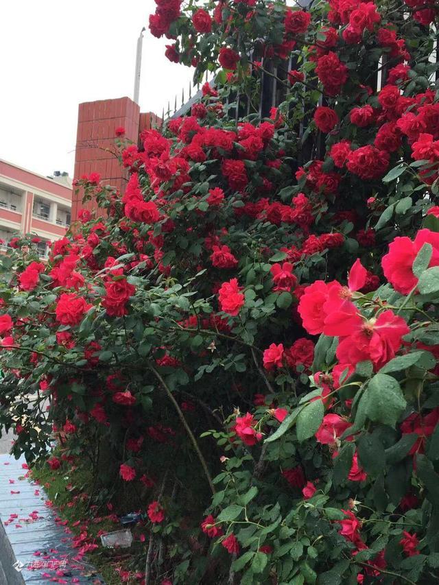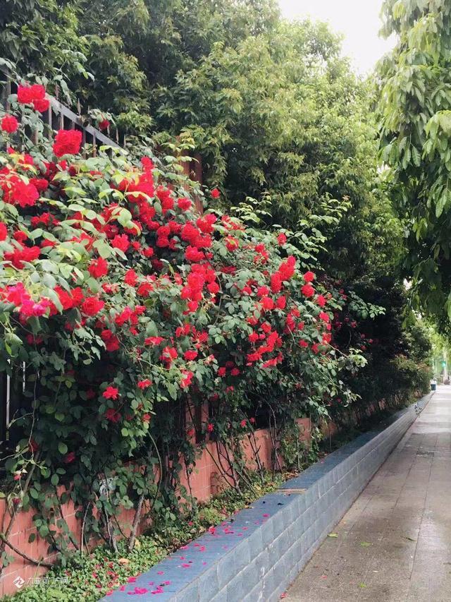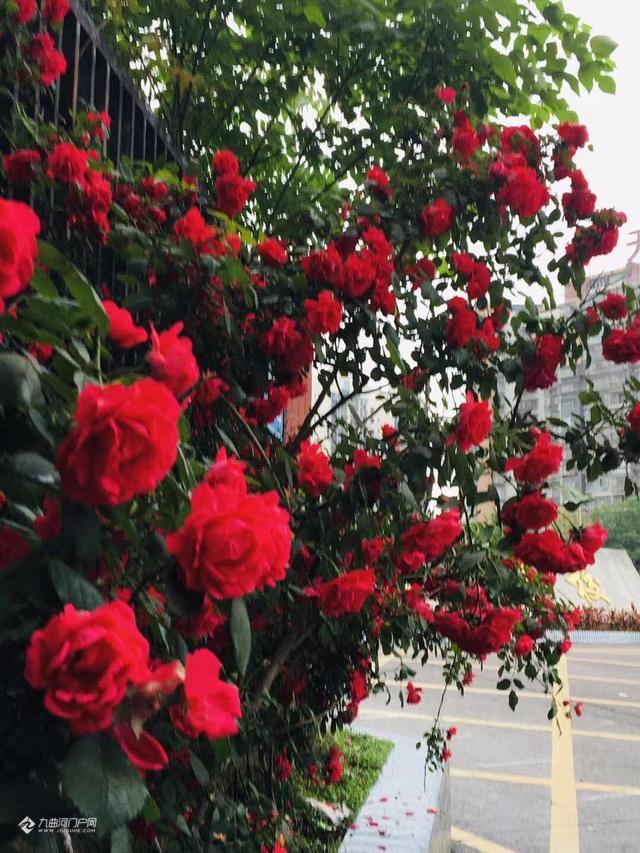 今天路过玉柴学校,随着微风吹过一股淡淡的花香扑鼻而来。定睛一看原来是学校周围护栏边全是争相盛开的玫瑰花,红似火的玫瑰花在绿叶的衬托下显得非常高雅漂亮。把整个学校都点缀得格外美丽。这些幸运的学子们能在这么优美的环境中学习,得力于学校的教职员工煞费苦心为学生们创造出像花园式的校园。