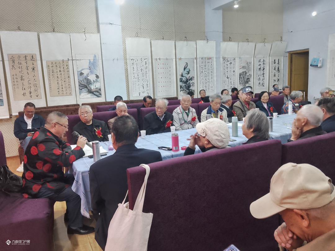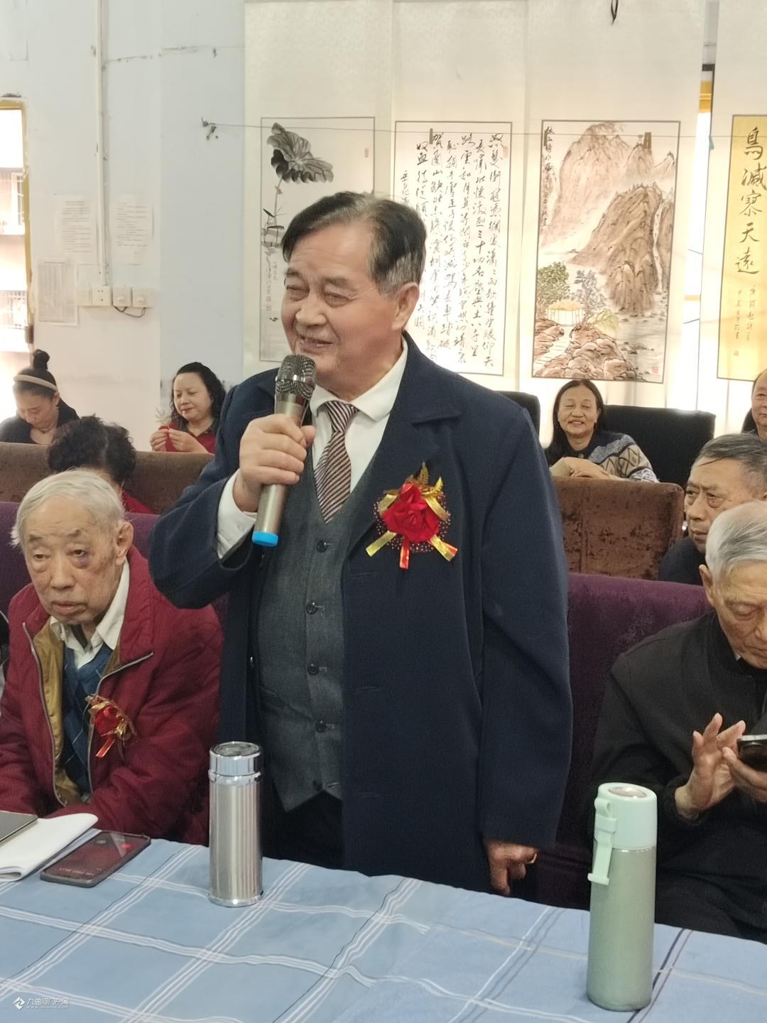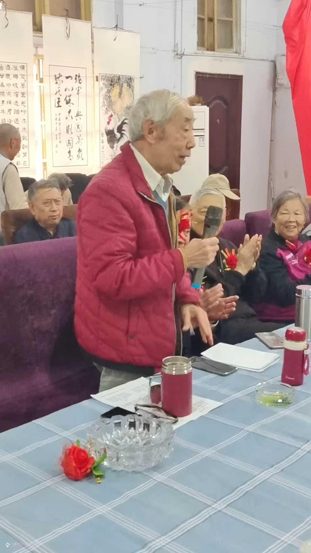 李会长讲完后,80岁以上的老会员争先恐后发言,首先,老会长吴传模率先发言,他结合自己的亲身经历,大讲特讲“共产党好!”我们今天来之不易的幸福生活,我们雁江区老年诗书画研究会“诗书画艺”的各项成就,都离不开共产党的领导,应该感恩毛主席,感谢共产党。作为原任老会长,他特别祝愿大家:节日快乐,健康长寿,健康长寿!