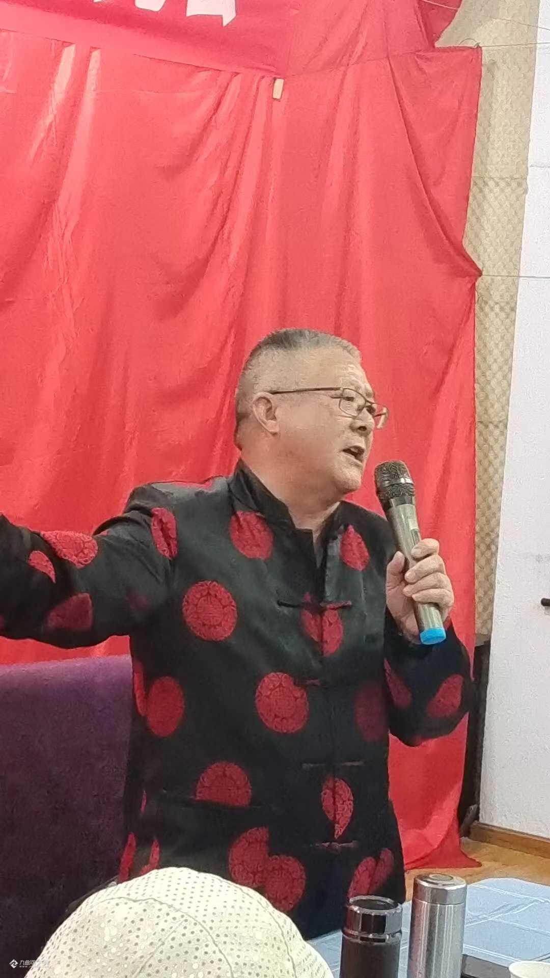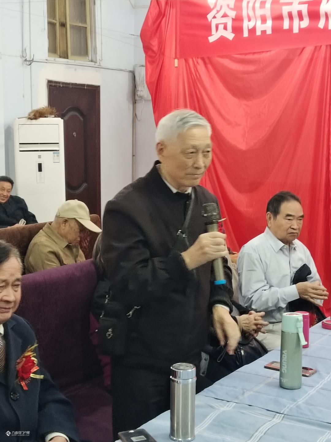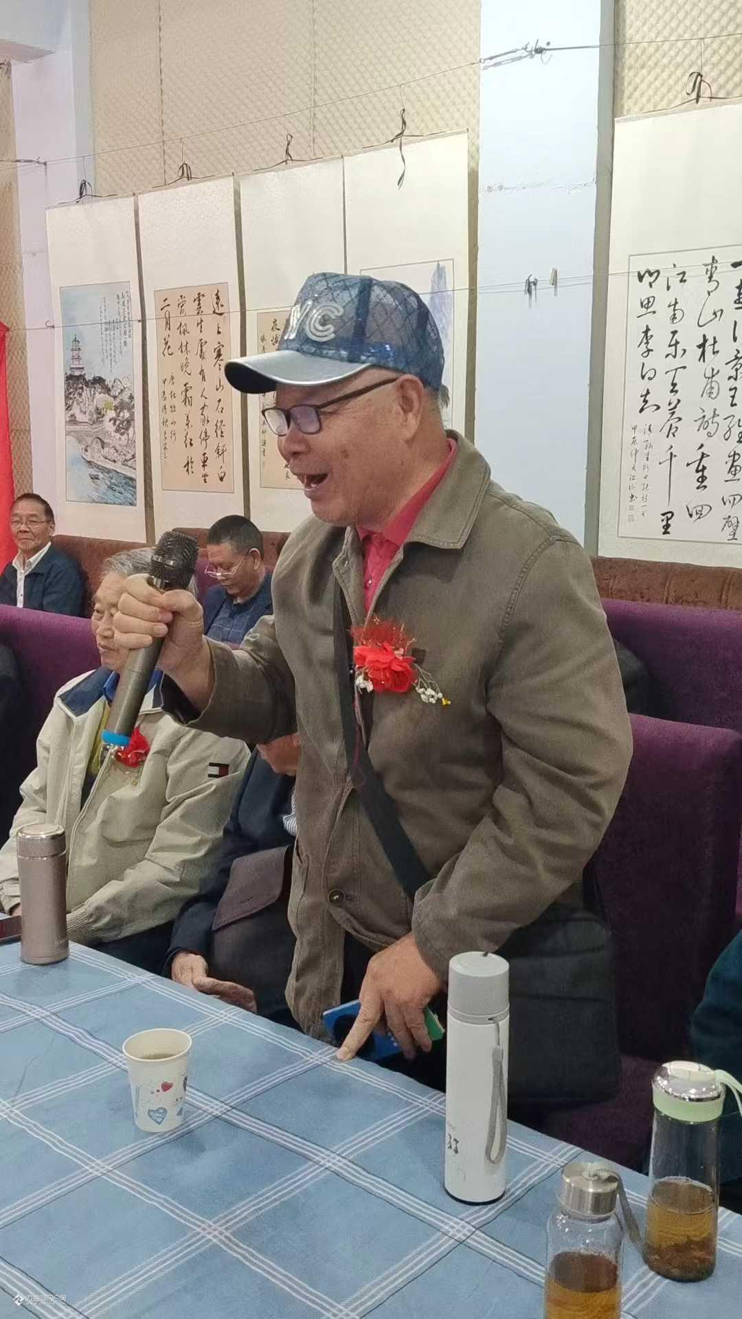 李会长讲完后,80岁以上的老会员争先恐后发言,首先,老会长吴传模率先发言,他结合自己的亲身经历,大讲特讲“共产党好!”我们今天来之不易的幸福生活,我们雁江区老年诗书画研究会“诗书画艺”的各项成就,都离不开共产党的领导,应该感恩毛主席,感谢共产党。作为原任老会长,他特别祝愿大家:节日快乐,健康长寿,健康长寿!