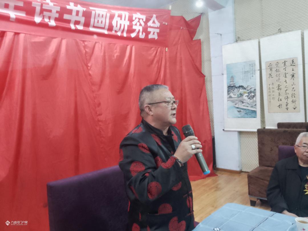接着,雁江区老年诗书画研究会党支部书记、会长李克昌同志作了热情洋溢的讲话。他向全体会员致以重阳佳节的祝福,特别向研究会80岁以上“老寿星”表示热烈祝贺!