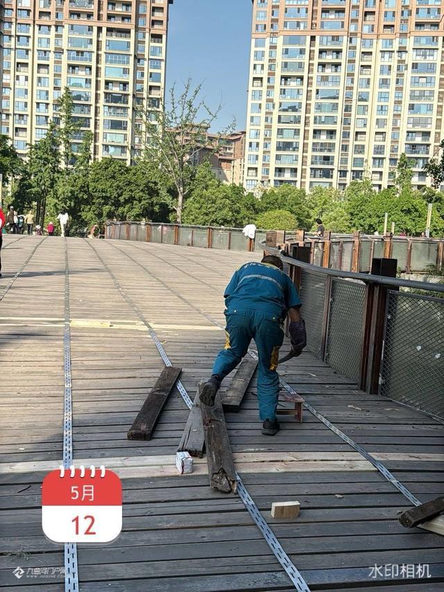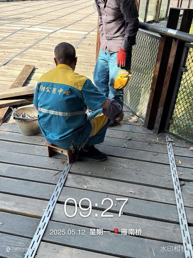 在雁南桥,资阳公用中心的工人仔佃检查,逐一维修更换桥面。给市民提供一个安全、舒适的生活环境。