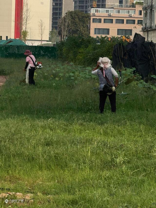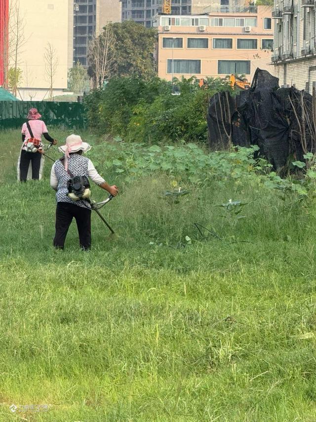 资阳建工人为了兰家坡七小分校周边绿化整齐划一迎新生入学卯劲工作