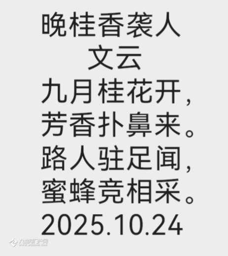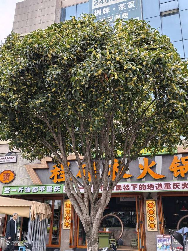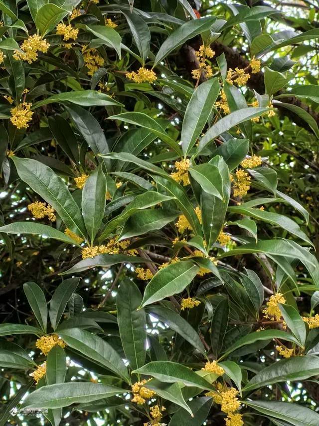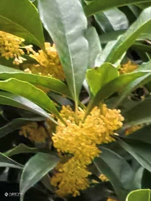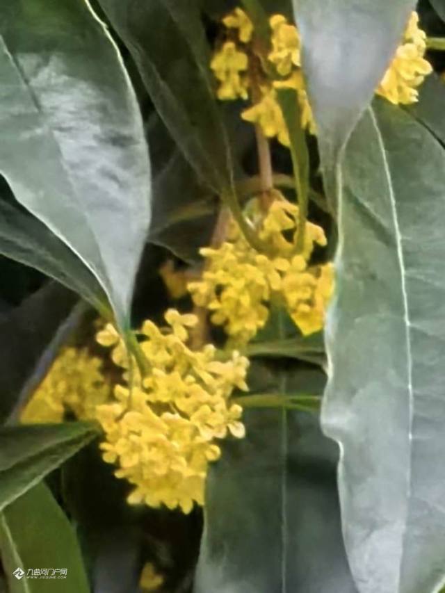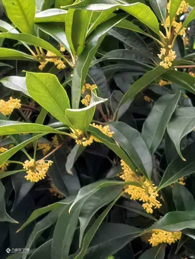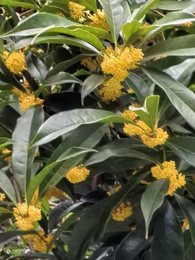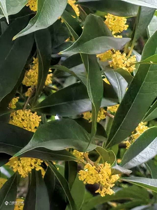 由于气候的原因,九曲河畔的桂花迟迟未开,最近几天才竞相开放,喷芳吐艳,人们路过时都忍不住停下脚步,深深的呼吸几口醉人的香气。