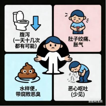 · 拉出来的多是水样便,还带着一股腐败的恶臭