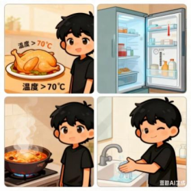 ·煮熟煮透:肉类尽量切小块再煮,确保中心温度达到70℃以上,看不到血丝血水。