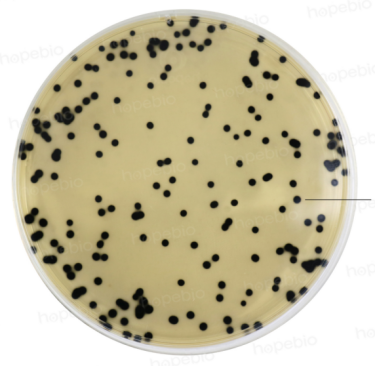 图注:产气荚膜梭菌在TSC平板上的菌落形态(左图),我愿称之为“邪恶黑波点”,很明显的特征就是又大又黑又圆,并且散发着恶臭。