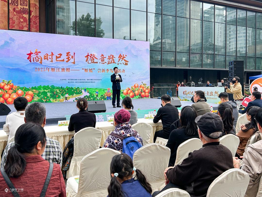 在农产品推介环节,雁江区长寿柑桔协会会长杨勇重点介绍了“雁媛”蜜柑系列产品,带领大家一同见证"爱媛"与"春见"杂交培育的新品种雁媛如何历经选育,最终形成果肉细嫩无渣的独特品质。四川知名主持人罗小刚通过"三绝"总结雁媛的魅力:品种绝——融合爱媛的甜润与春见的脆爽;颜色绝——成熟时呈现独特的橙色渐变;口味绝——入口即化,回味蜜柑香。
