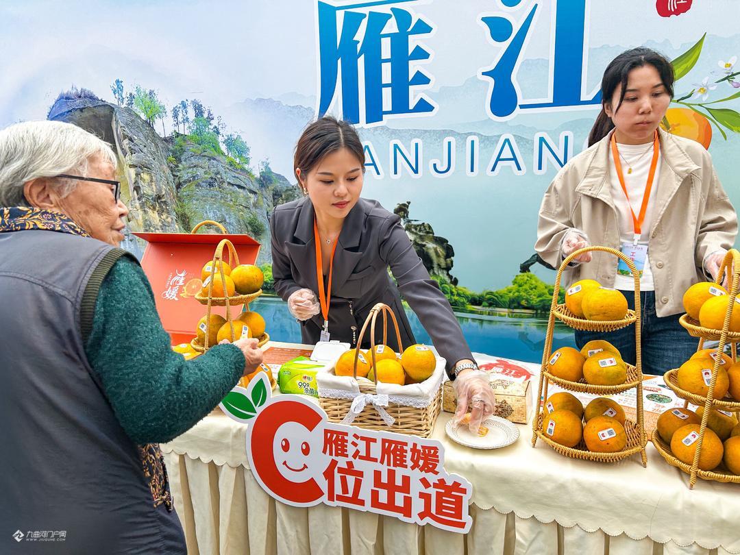 开场节目中,舞者们身着橙红渐变纱裙,手持仿真柑橘道具,在《橘子红了》的旋律中翩翩起舞,仿佛将整个蜜柑果园搬到了城市中心。场内设置的“只尝不卖”品鉴区前排起蜿蜒长龙,指尖轻触间,雁媛蜜柑薄如蝉翼的果皮与饱满的汁水引来阵阵惊叹,不少尝鲜者在品尝后立即扫码预订;场外还设置有多个特色摊位,让更多的成都市民及外来游客了解到雁江的美食文化、风土人情及传统非遗技艺。