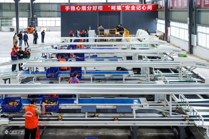 在工作人员的引导下,区网联会网络人士代表们走进交易中心内部。分选区域科技感十足,其中呵福式AI智能分选线无疑是全场“明星”。蜜柑经流水线传送时,称重、高清拍照验形辨色、近红外光测糖度同步完成,损伤、甜度等数据精准呈现。工人们快速打包后,鲜果随即装车发往各地。