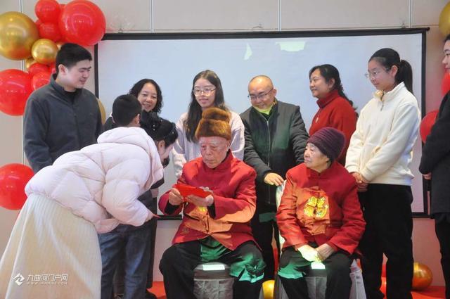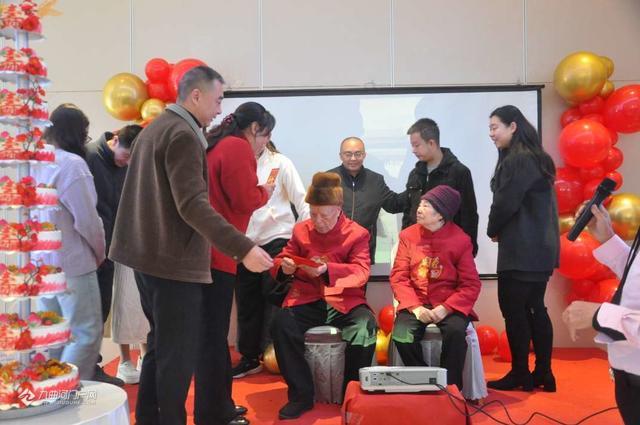 拜寿环节温馨感人,晚辈们依次向寿星三鞠躬,一谢生育之恩,二谢养育之情,三祝百年长寿。寿星则为晚辈们发放红包,传递福气与关爱。