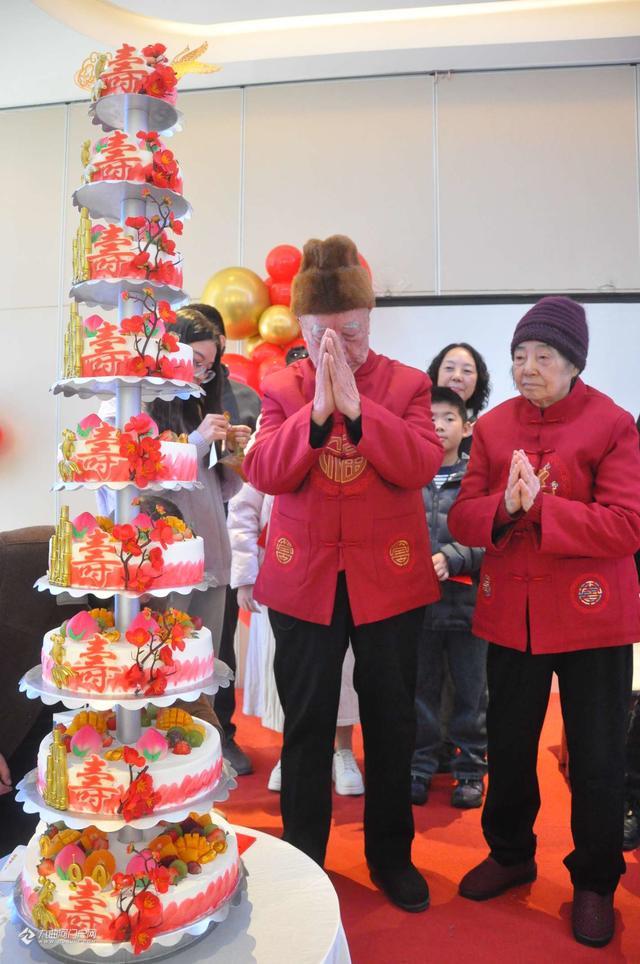 身着传统中式喜庆绸缎双喜服装的寿星王德章先生,与相濡以沫近九十高龄的老伴手捧鲜花端坐台上,满面笑容,接受晚辈子孙的鞠躬拜礼,笑纳老战友、老同事的真挚祝词与满堂亲友的美好祝福。