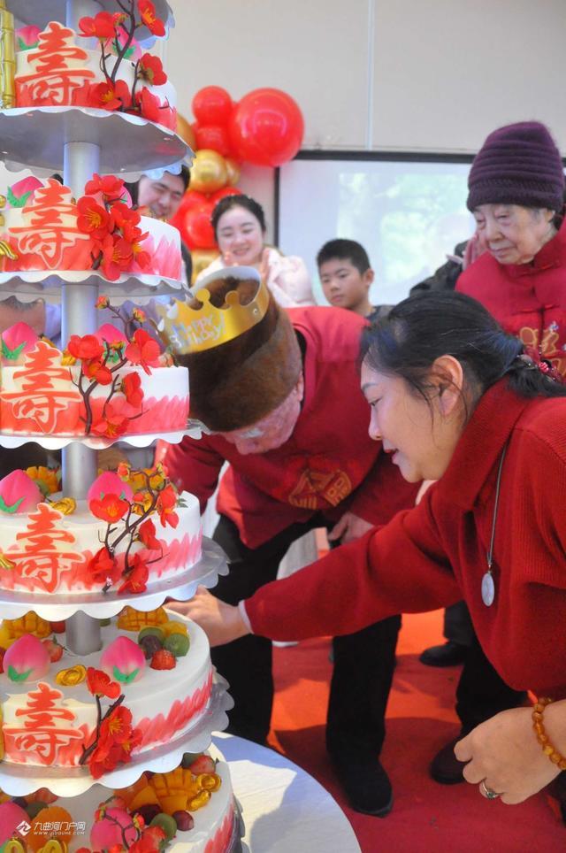随后,寿星在老伴的陪伴与子女的协助下点燃蜡烛、默默许愿,全体在场人员共同唱响《祝你生日快乐歌》。许愿完毕,寿星吹灭蜡烛、切开蛋糕,将甜蜜与幸福分享给每一位亲友。