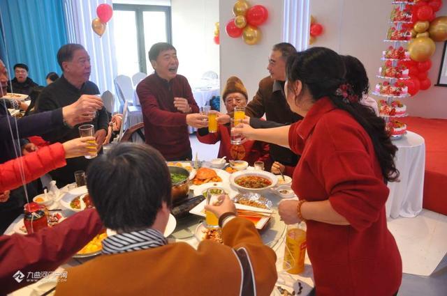 随着祝福声落下,生日庆典仪式圆满礼成,午宴觥筹交错,昔日战友、同事和亲朋好友及晚辈频频依偎在寿星身旁敬酒祝福,大家共享欢乐时光。