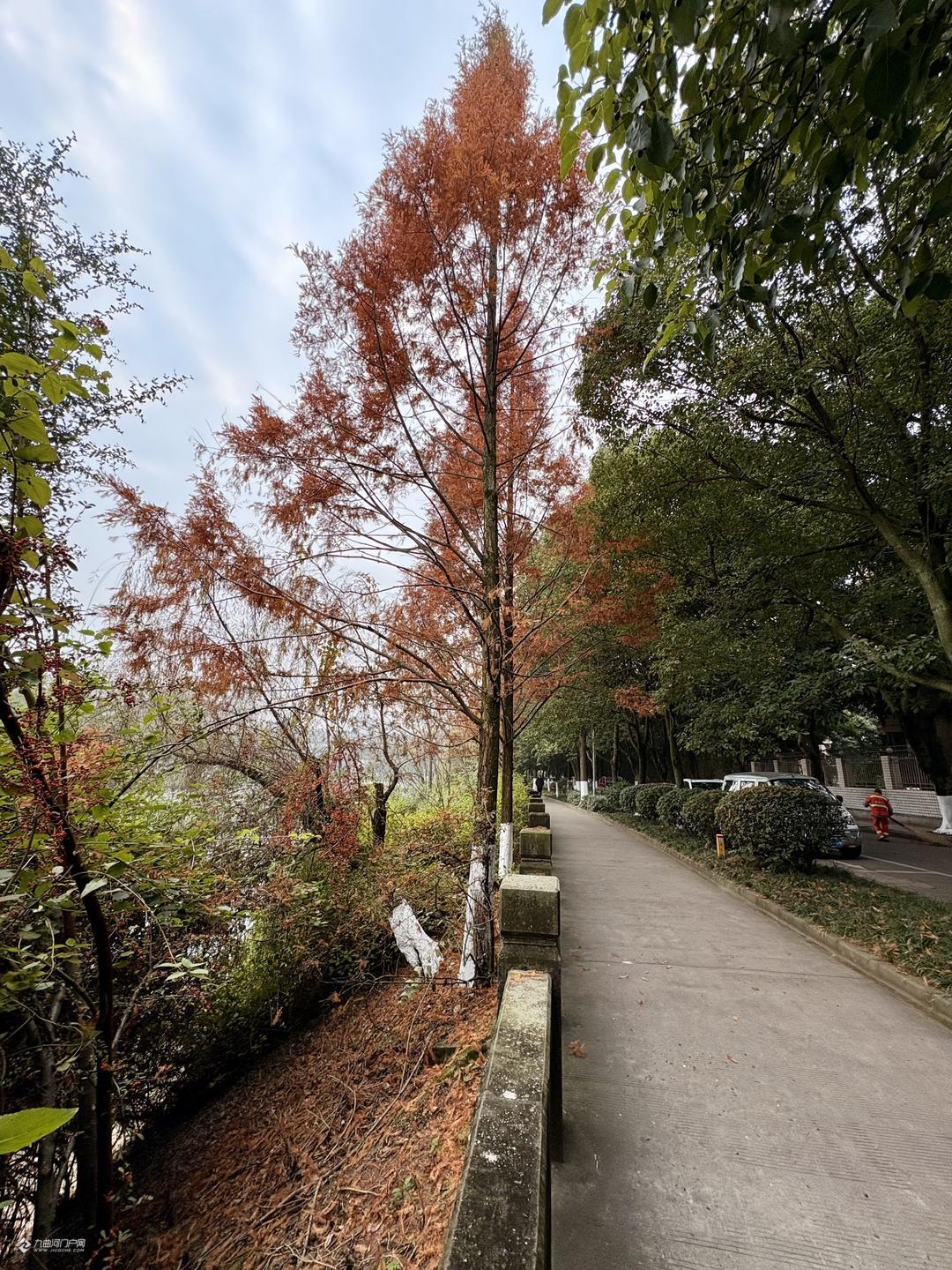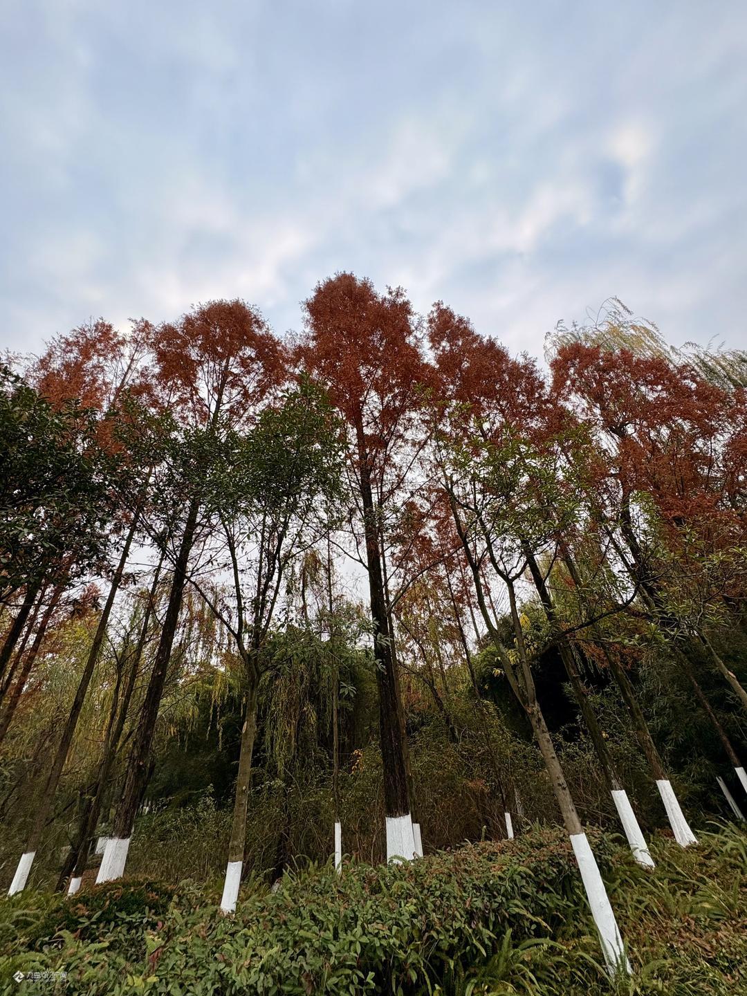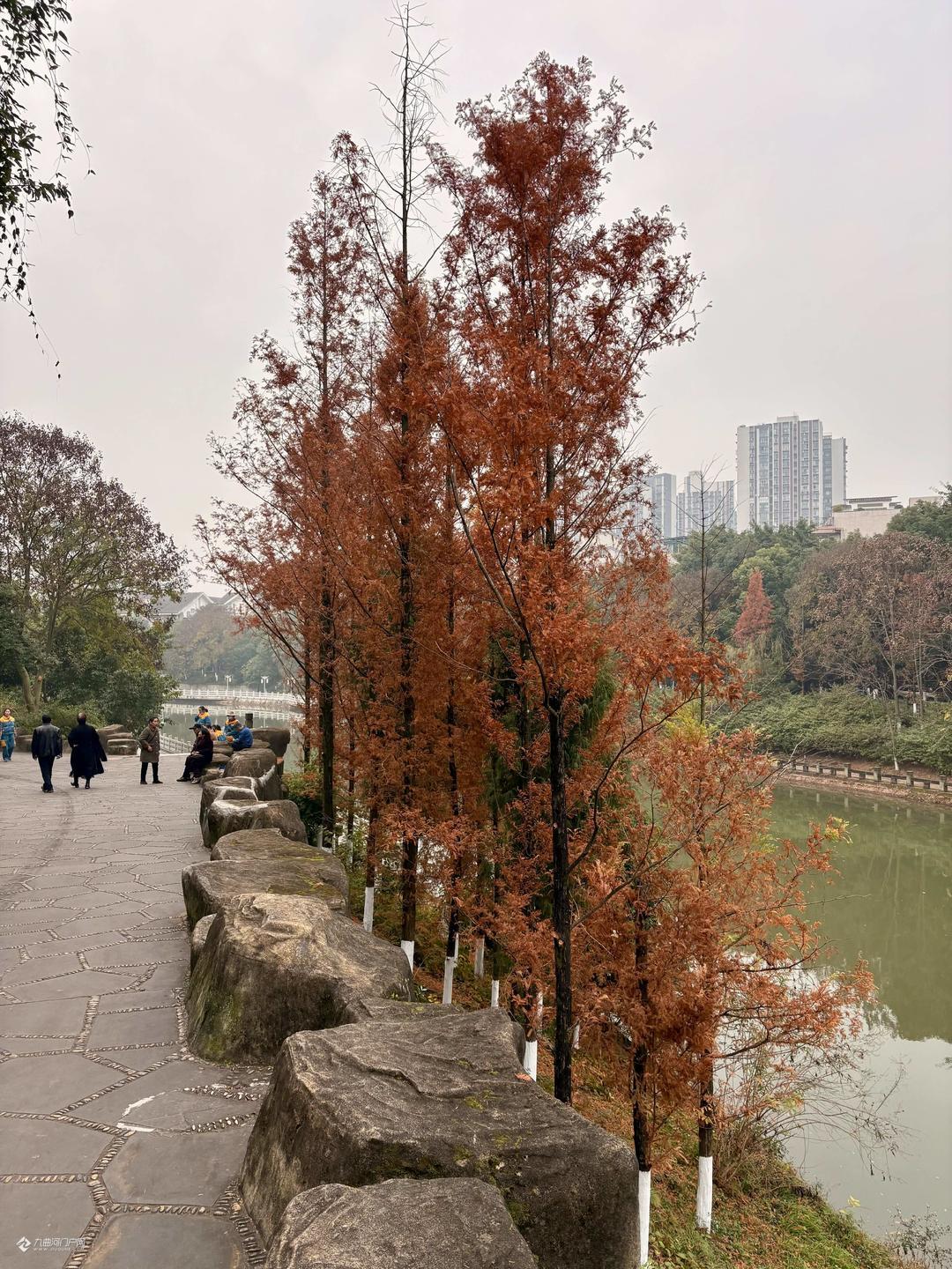 大雪时节将至,资阳三贤公园水杉与杨柳 营造出层次分明的景观画卷。