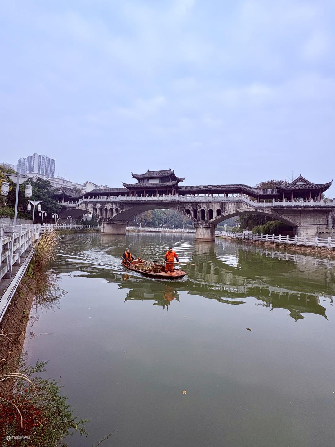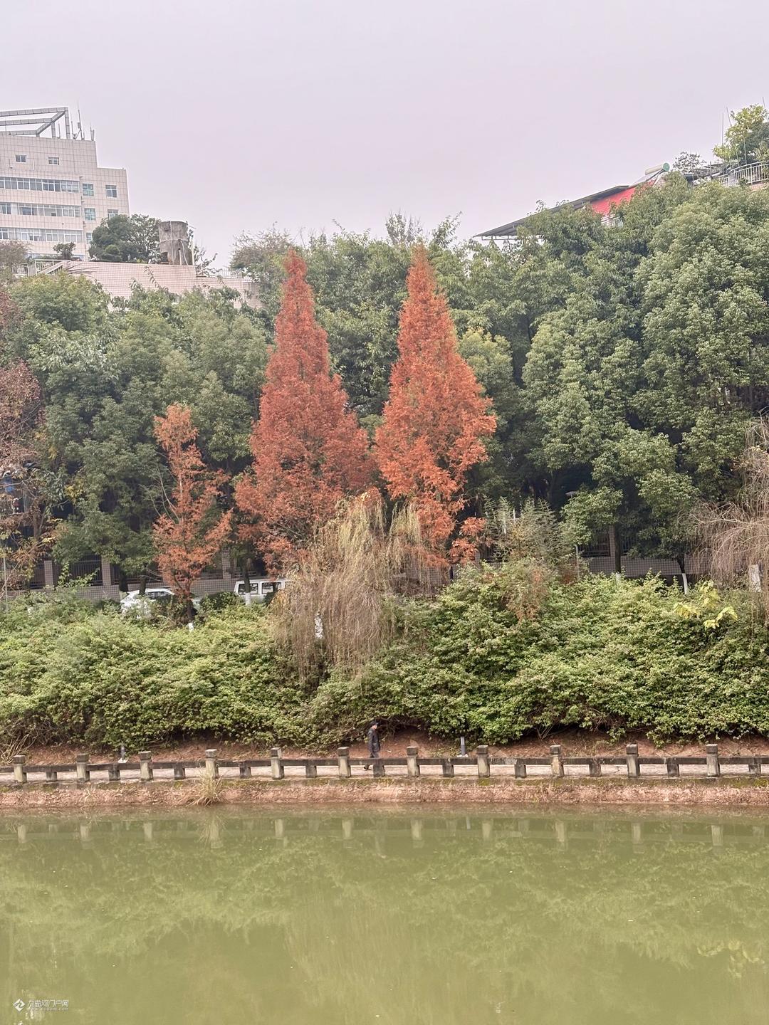 大雪时节将至雁城三贤公园,水杉与杨柳沿河岸错落分布,营造出层次分明的景观画卷。