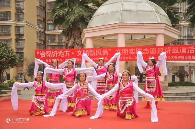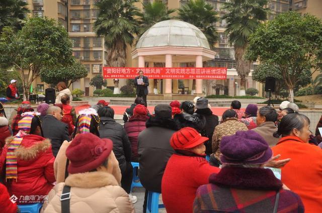 12月12日上午9时,资阳莲花街道九眼桥社区外滩一号正门内广场暖意融融,“资阳好地方,文明新风尚”文明实践志愿巡讲巡演第六场活动在此开展。这场集文艺展演、理论宣讲、互动体验于一体的活动,为资阳社区文明添上了最生动的注脚。