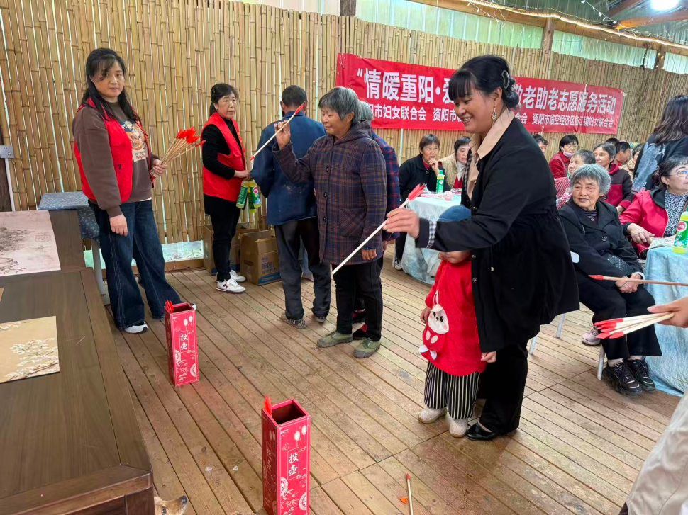 “情暖重阳·爱在红碑”敬老助老志愿服务活动邀请辖区约50名高龄、独居妇女参与。活动精心设计了制作艾草锤、健康知识问答和趣味投壶等内容,让大家在协作互动中体验重阳民俗,感受节日氛围。活动弘扬了尊老、敬老、爱老的优良传统,进一步增强了社区老年人的获得感与幸福感。