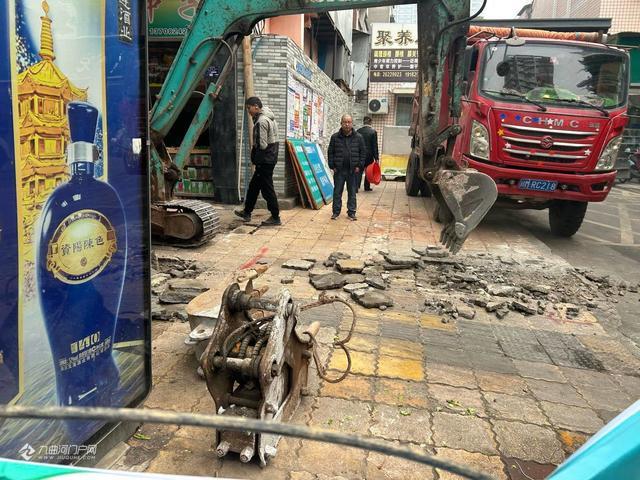 坑洼拜拜!资阳和平南路正在修补更换人行道上破损的地砖