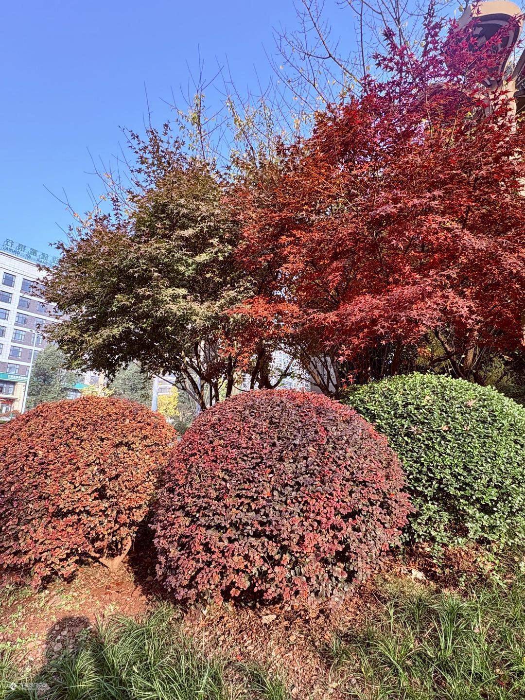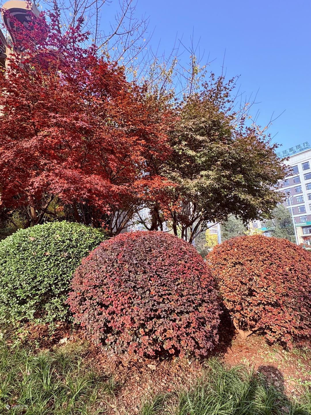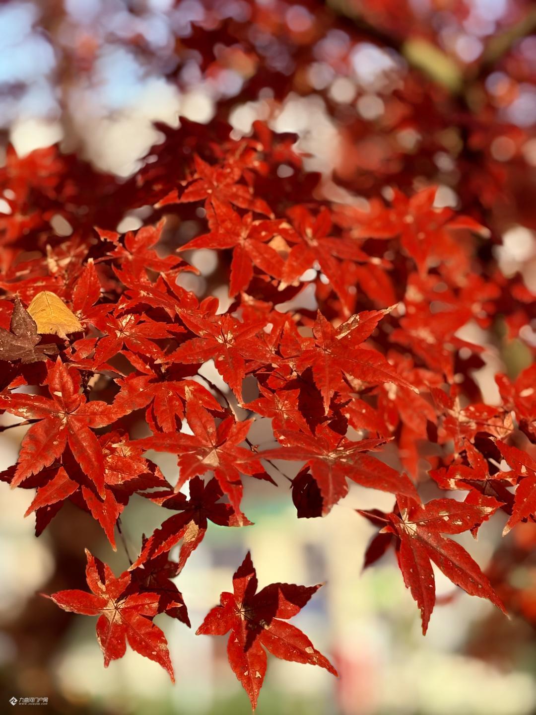 红枫叶随风舞动,宛如燃烧的火焰, 为雁城冬日增添了无尽的诗意色彩!
