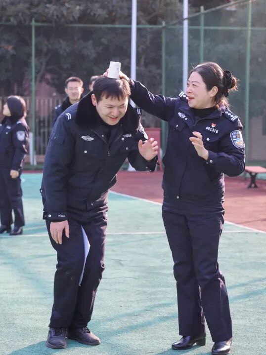在随后的团体心理辅导互动环节,心理治疗师刘丹、李丹,心理咨询师饶华玉、张倩带领全体人员开展了一场轻松而富有深度的团辅体验。通过“心灵盾牌”“支持之手”“放飞压力”等互动活动,引导大家觉察压力来源、表达内心感受、感受团队支持。活动现场气氛温馨融洽,民辅警在笑声与共鸣中释放情绪、舒缓压力,进一步增强了集体归属感与心理韧性。