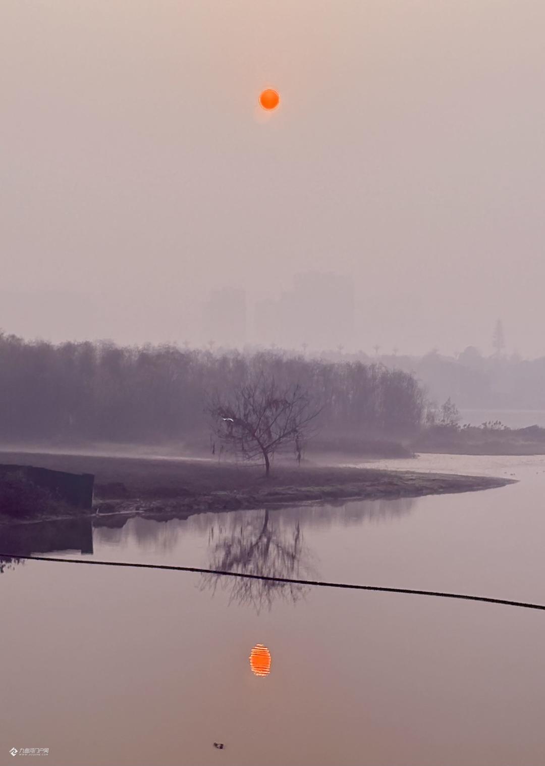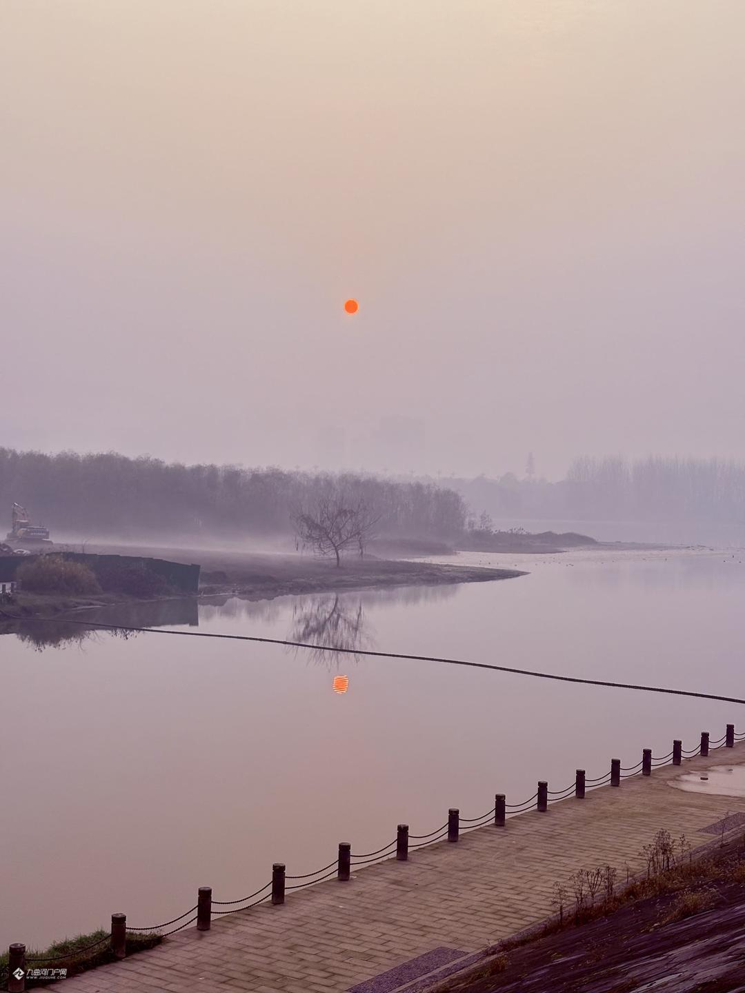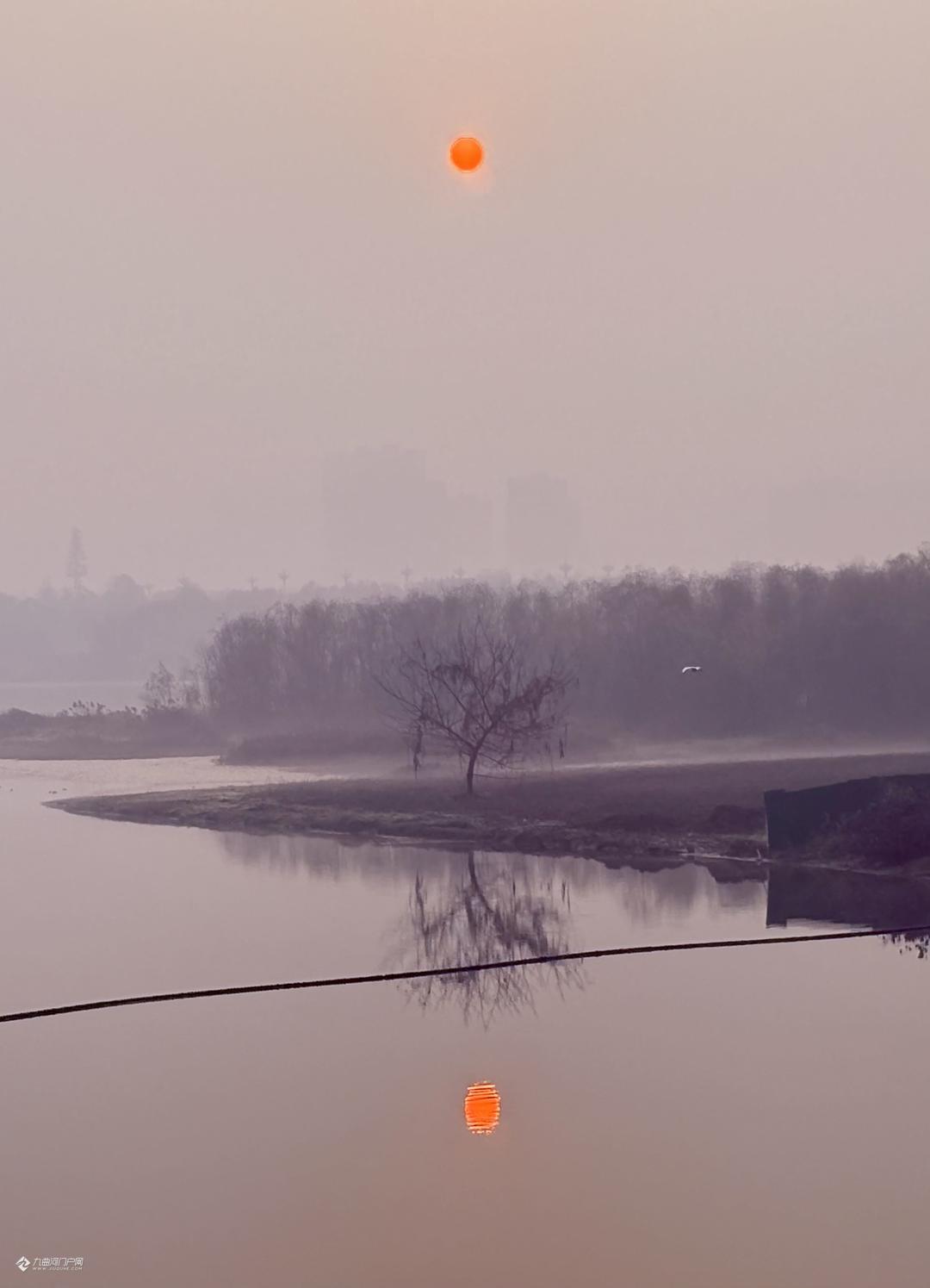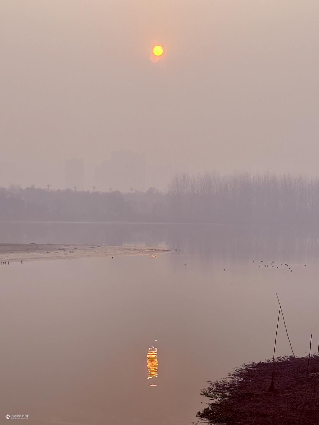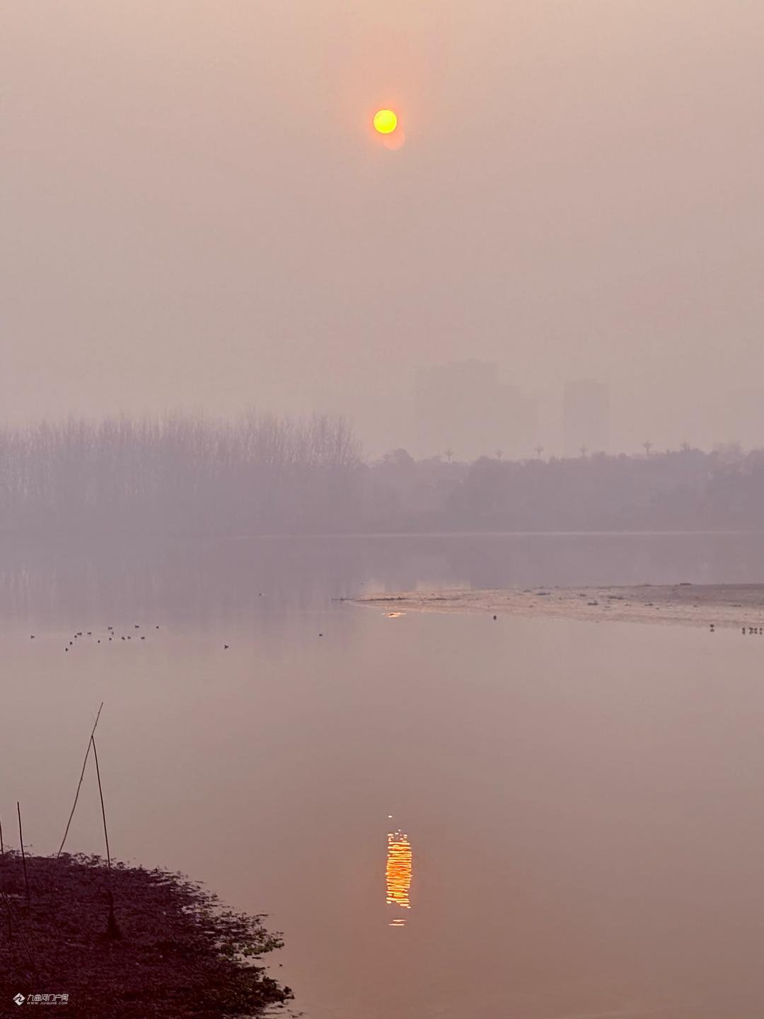 晨曦初照雁城江面渐醒,白鹭掠空一群水鸟戏波,垂钓者静坐与自然对话。