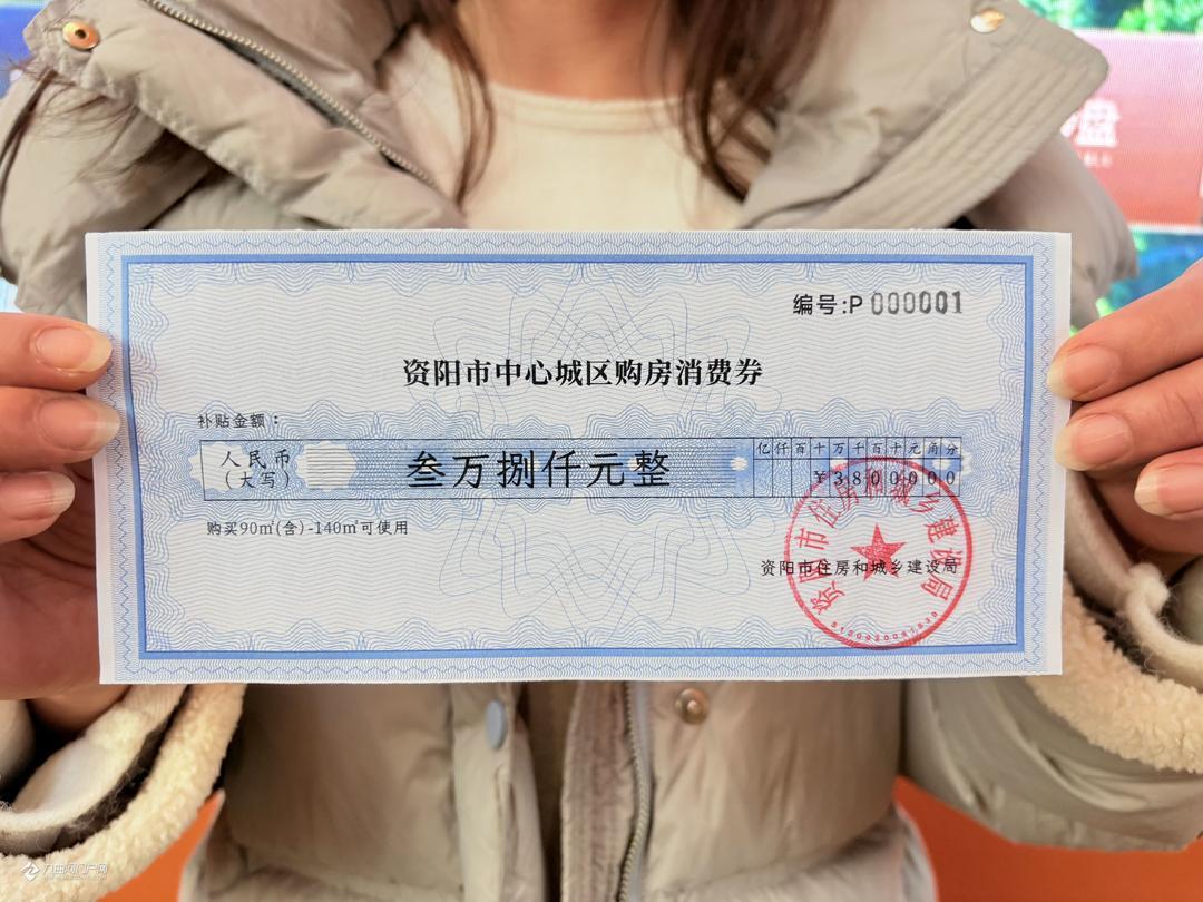 38000元!资阳推出购房补贴新政策,首张补贴券已顺利发放!