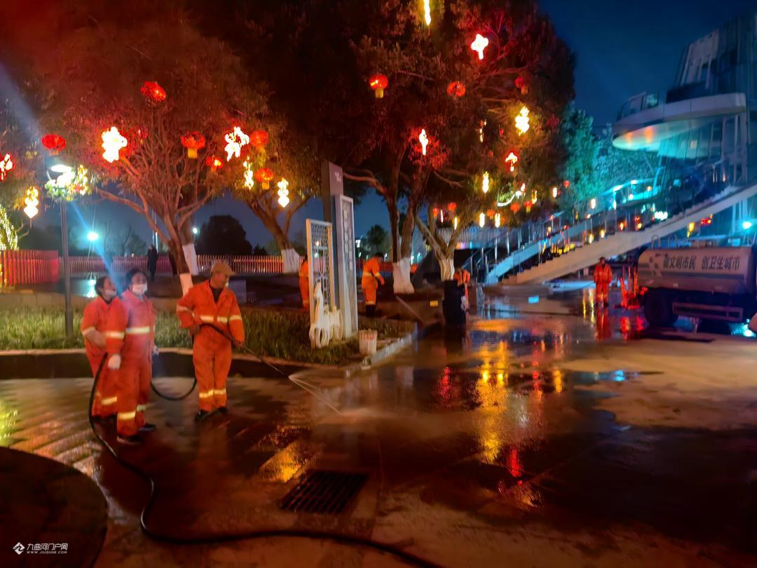 经过一夜的持续奋战,苌弘广场及周边近3万平方米的道路、河堤、天桥等区域经过深度清洗,环境卫生面貌焕然一新,城市品质得到明显提升。用实际行动为市民新春出行营造了干净、整洁、舒适的环境,让“城市之脊”以崭新姿态迎接新春的到来。