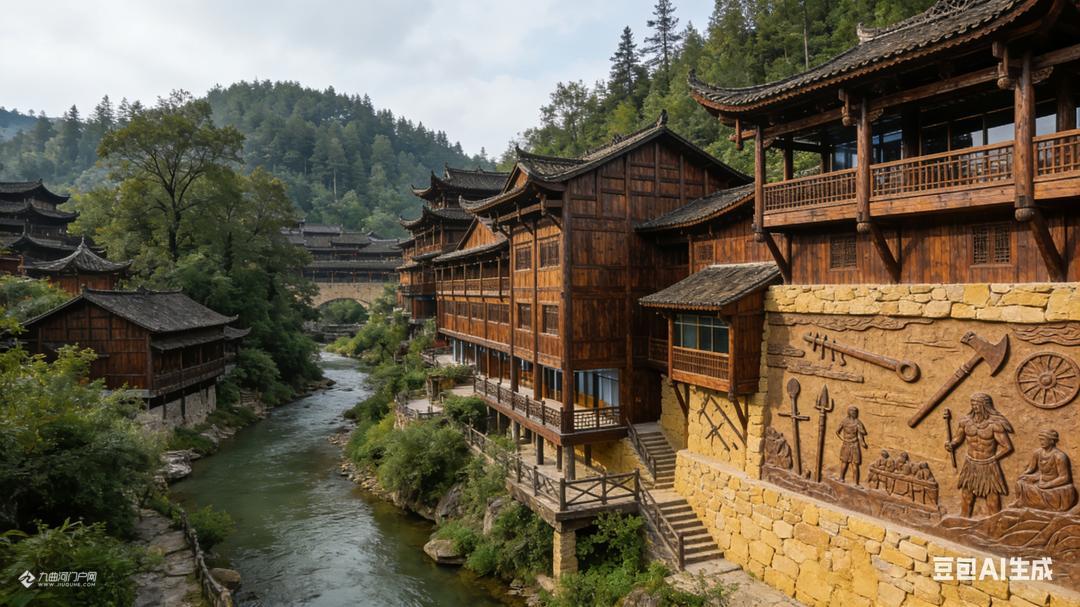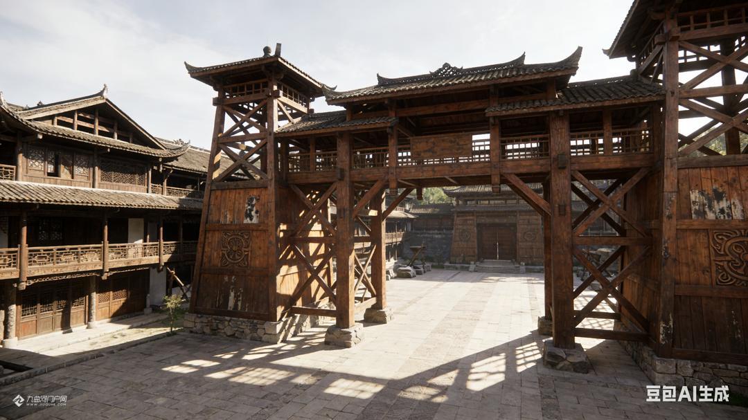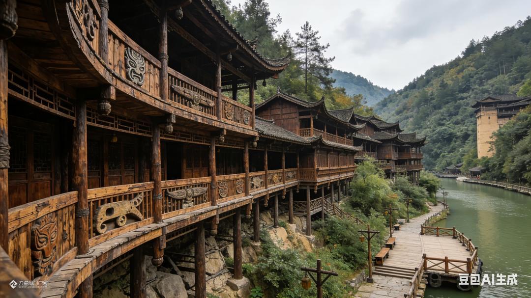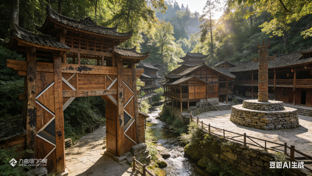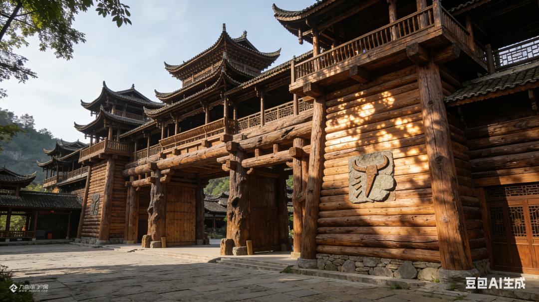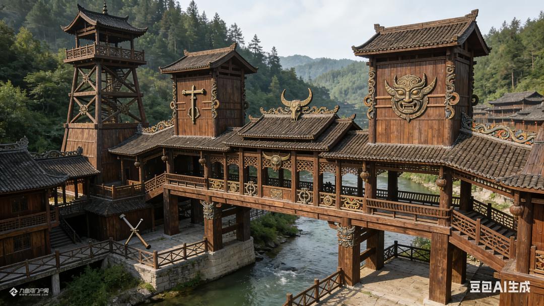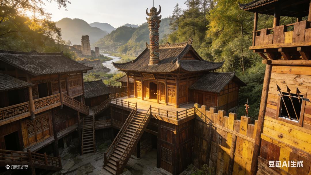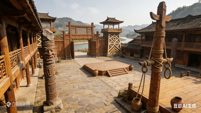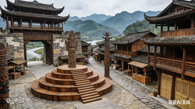 游罢蚩尤九黎城和重庆梦幻童话城堡后,李朋能运用AI设计了这些蒙溪河遗址之古木城建造设计图片。请大家欣赏,我负责想象,您们负责转发宣传和实现。