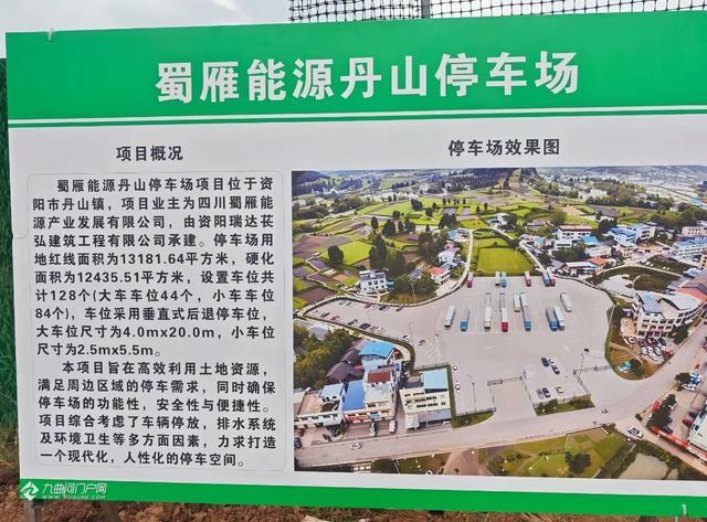 按现场施工信息牌上为准来看,项目位于资阳市丹山镇,停车场用地红线面积为13181.64平方米,硬化面积为12435.51平方米,设置车位共计128个(大车车位44个,小车车位84个)