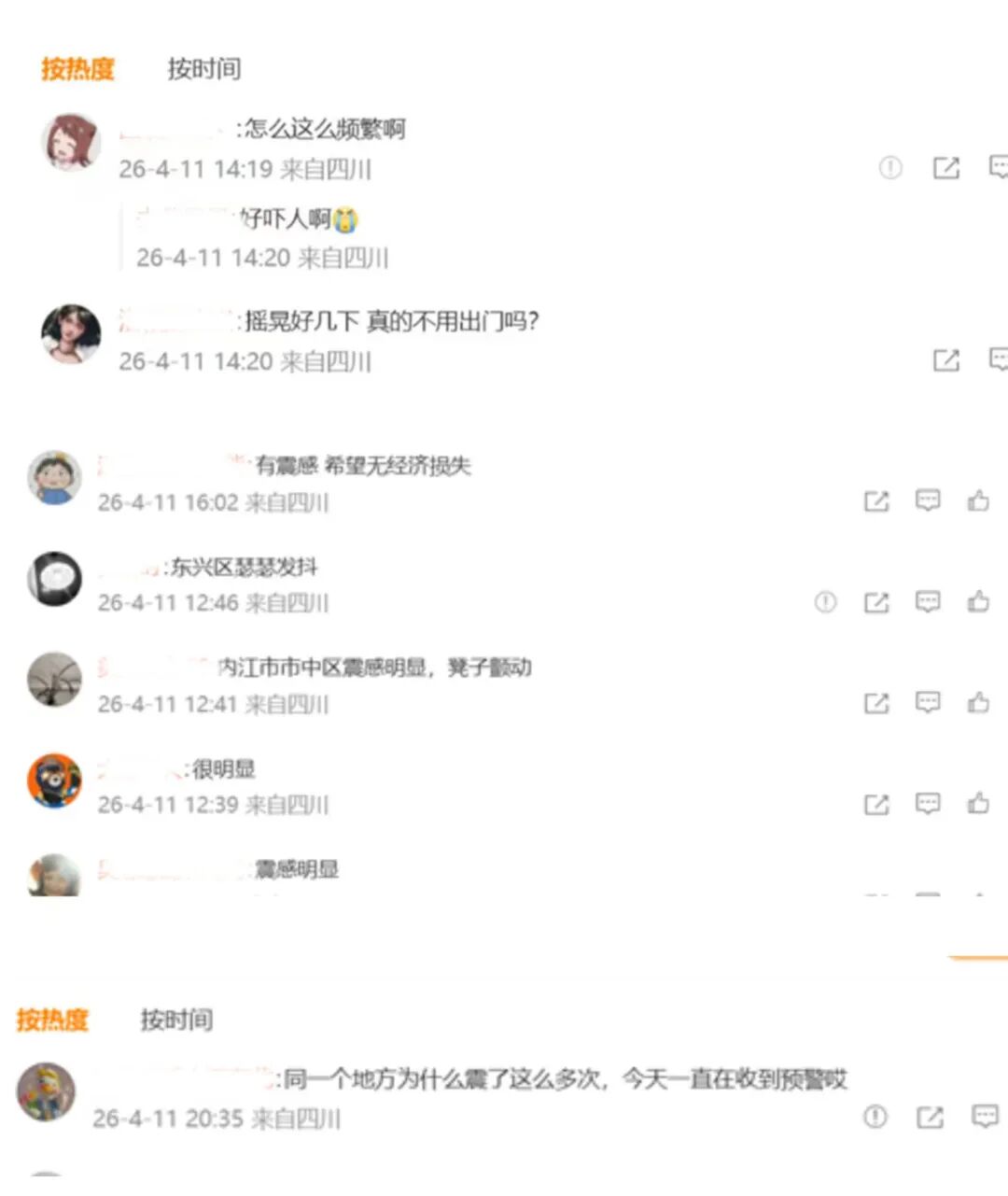 在中国地震台网发布的相关微博下,网友们的留言。