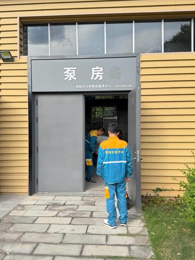 资阳市雁江区园林小区外大型排涝站,市政服务中心的工人认真检查,维护排涝设备,确保安全度讯打下扎的基础。