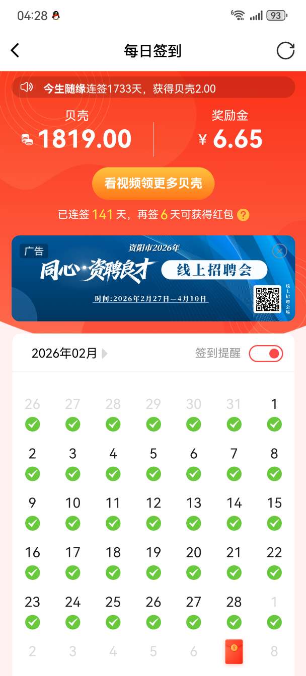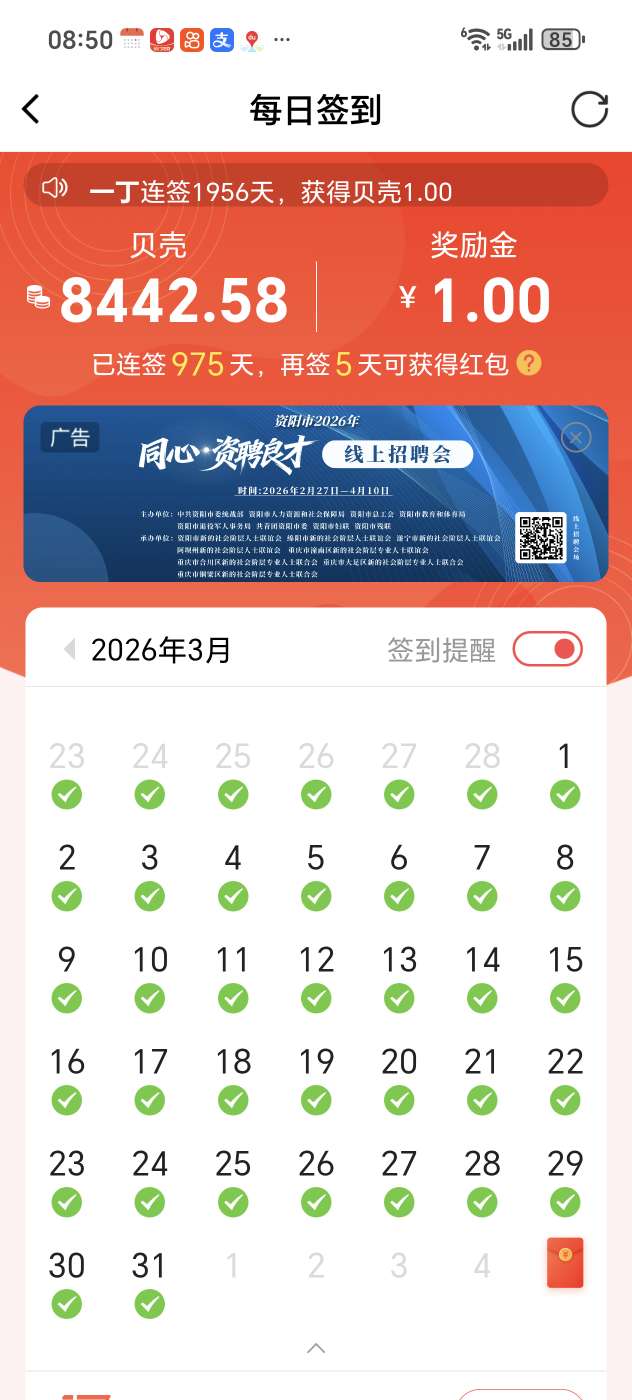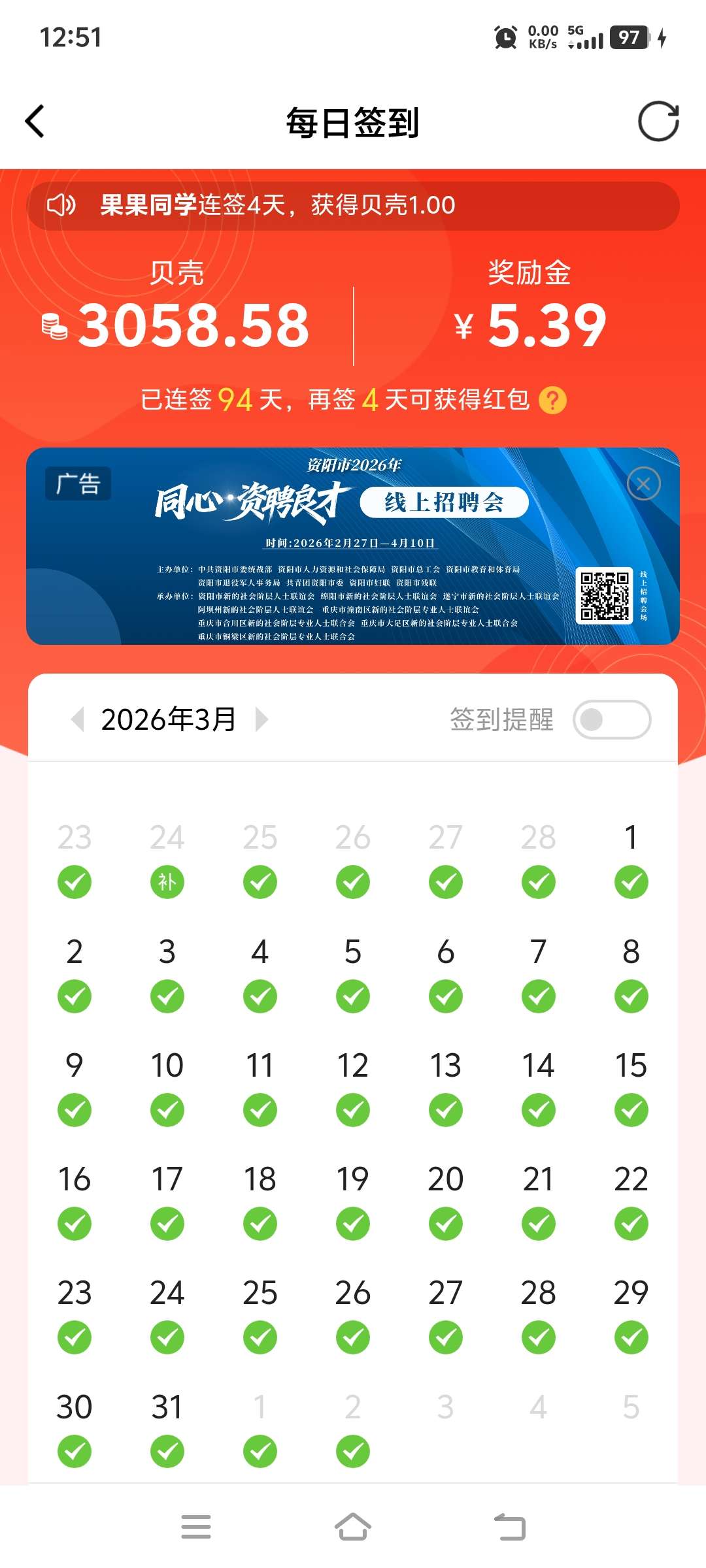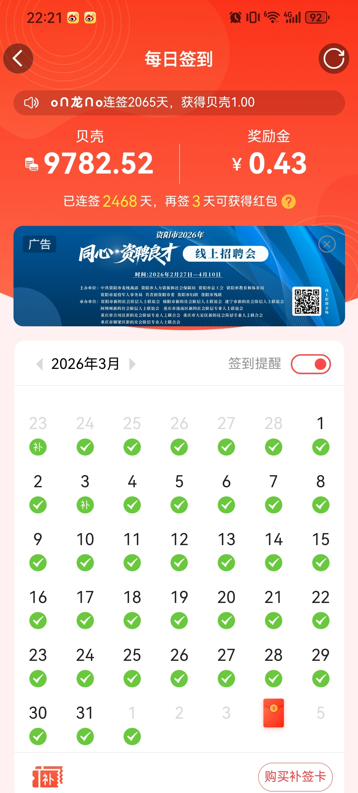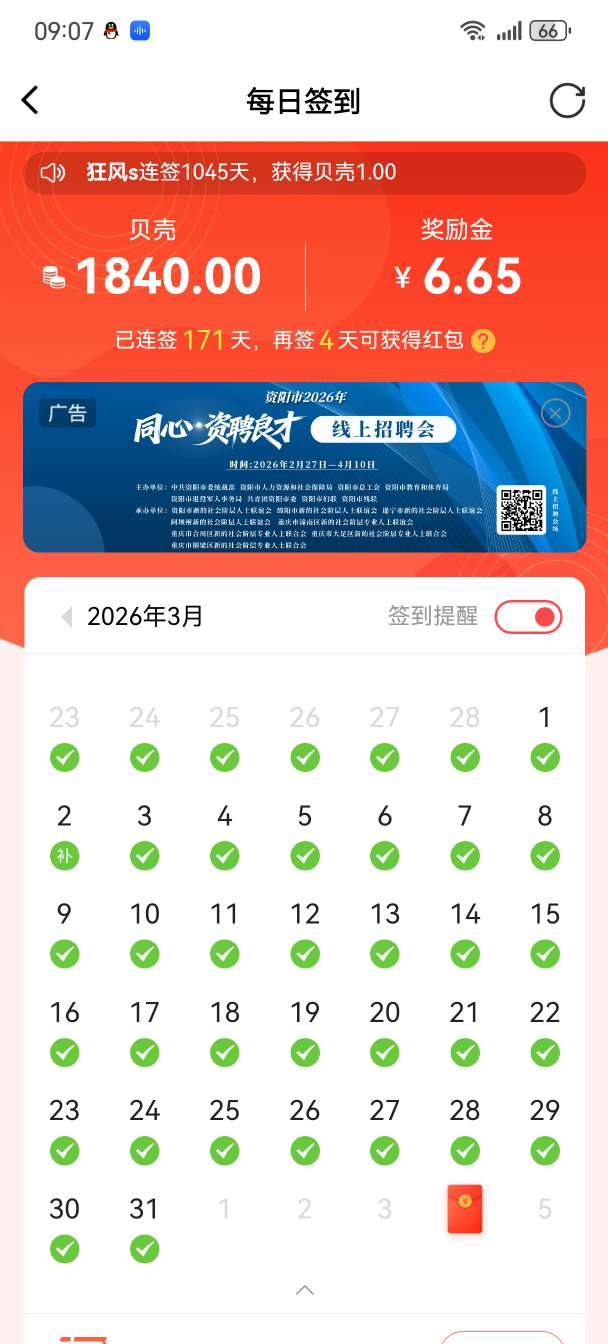 截图方式:进入签到页面后,点击左侧翻页图标即可查看上月签到记录,然后截屏。